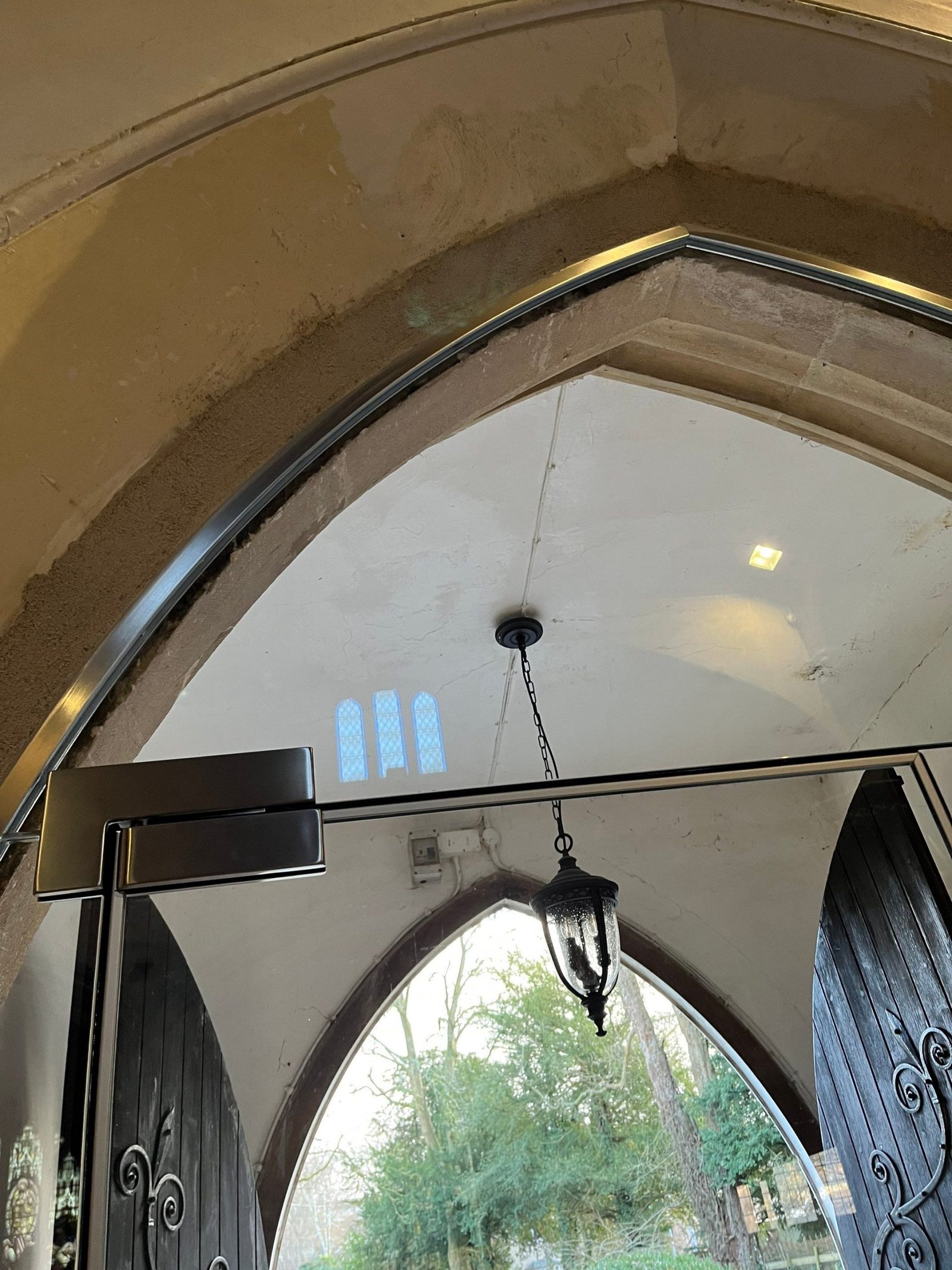 Some of the challenges on this project included the suitably sized doors within the space as mentioned above, the existing floor levels which ran upwards away from the doors, and installation in the main entrance whilst maintaining access to the Church.
